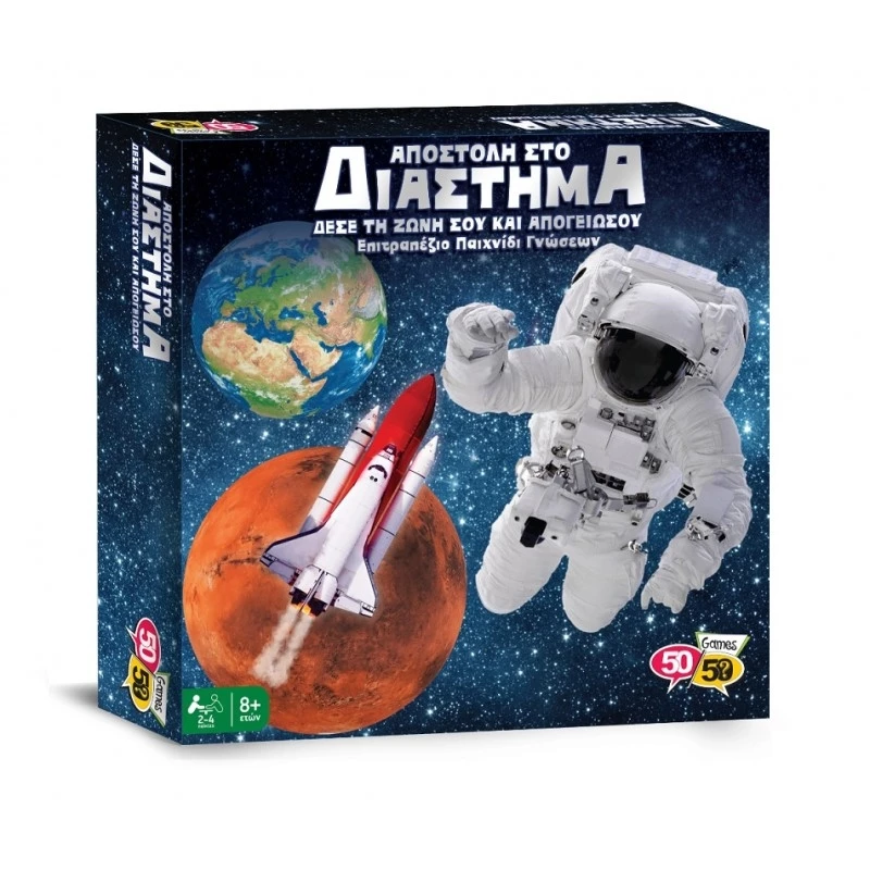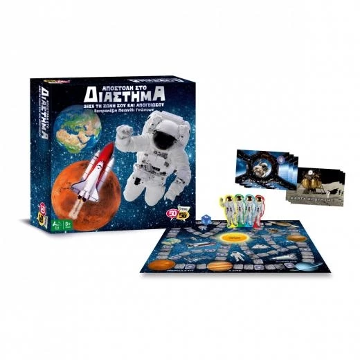Λάβε μέρος σε διαστημικές αποστολές, ανακάλυψε τους πλανήτες του ηλιακού μας συστήματος και κατάκτησε όσους περισσότερους μπορείς! Από την επάνδρωση των διαστημοπλοίων έως την εκτόξευση των πυραύλων, το ταξίδι της κατάκτησης των πλανητών θα είναι γεμάτο περιπέτειες και δράση! Δέσε τη ζώνη σου και ετοιμάσου για εκτόξευση ή για… ανώμαλη προσγείωση! Ξεκίνα τον δρόμο της κατάκτησης των πλανητών! Μόλις φτάσεις σε έναν πλανήτη, πρέπει να απαντήσεις σωστά για να τον κατακτήσεις. Όμως πρόσεχε, γιατί το διάστημα κρύβει παγίδες και μαύρες τρύπες που θα δυσκολέψουν το ταξίδι σου. Διαστάσεις κουτιού: Μ:27x Π:5,5x Υ:27 εκ. Ηλικία: 8+ Αριθμός παικτών: 2-4 παίκτες.