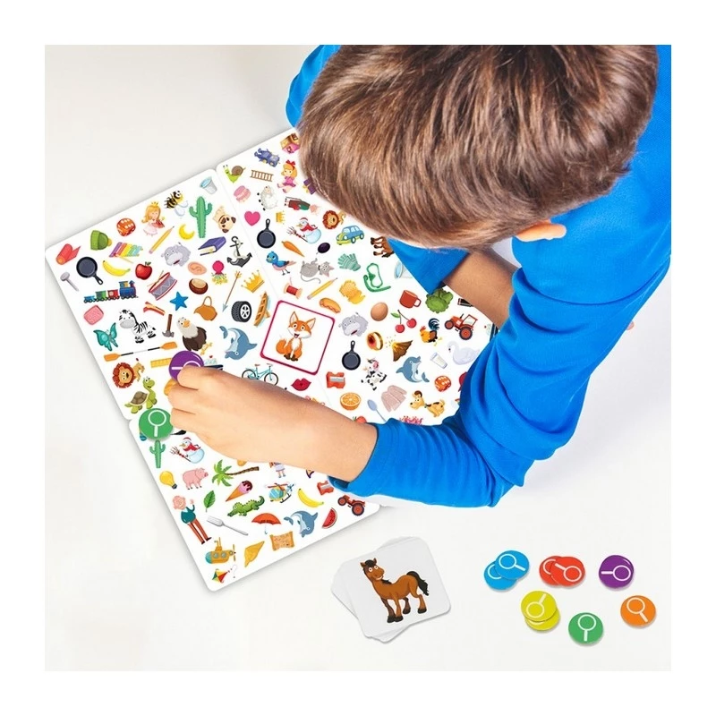 Το απόλυτο παιχνίδι παρατηρητικότητας! Διάλεξε ένα ταμπλό, τράβηξε μια κάρτα και γρήγορα ψάξε να βρεις ποιο από τα αντικείμενα της κάρτας σου υπάρχει στο ταμπλό σου! Βρες το πρώτος, χτύπα το κουδουνάκι και ντινγκ…κέρδισες!Για 2-4 παίκτες.