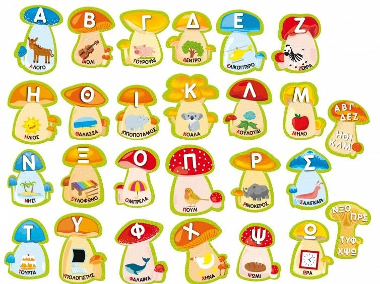 Ένα φανταστικό παιχνίδι για να μάθουν παίζοντας ποια είναι τα γράμματα και να τα συνδέουν με τις αντίστοιχες λέξεις ενώ παρατηρούν τις εικόνες στις κάρτες μανιτάρια.