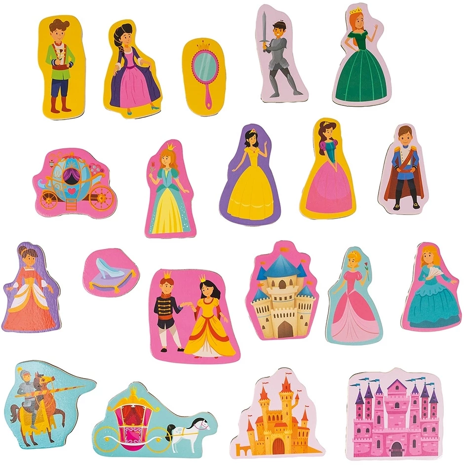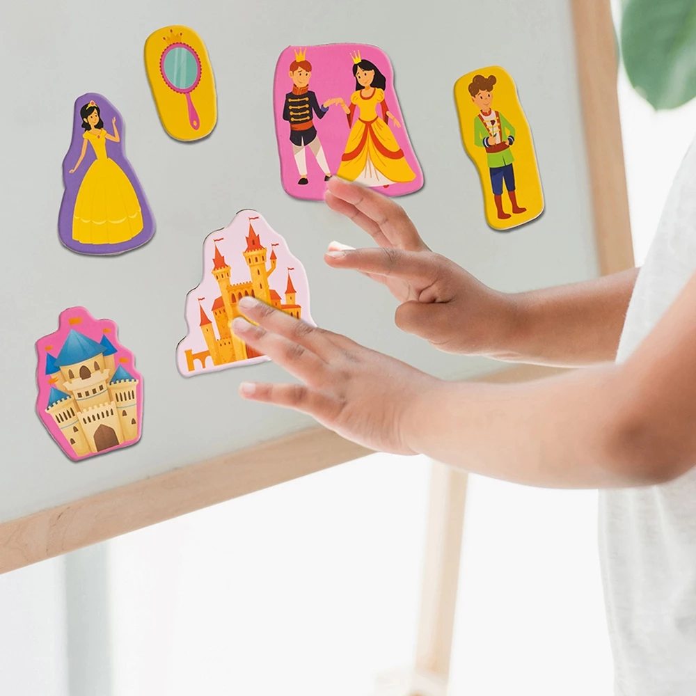 Παιχνίδι με 20 ξύλινους μαγνήτες ιδανικό για την ανάπτυξη της φαντασίας και της δημιουργικότηατς του παιδιού. Το προϊόν περιλαμβάνει 20 ξύλινους μαγνήτες με πολλά παραμυθένια στοιχεία, πριγκίπισσες, παλάτια, αξεσουάρ για να δημιουργήσει το παιδί το δικό του παραμύθι. Εύκολη τοποθέτηση και επανατοποθέτηση σε οποιαδήποτε μαγνητική επιφάνεια. Ταξιδεύοουμε σε κόσμους παραμυθένιους με το Magnet Box.