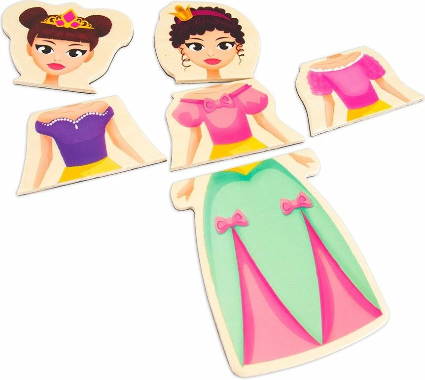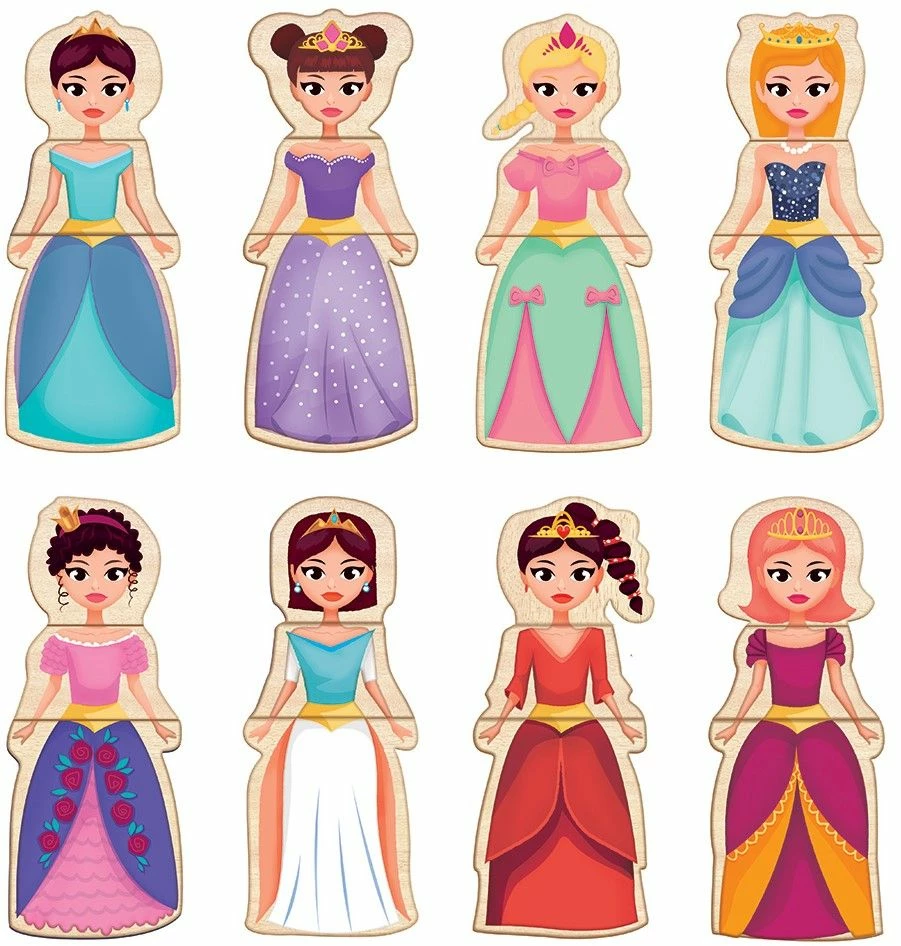 Διασκεδάστε με τις ξύλινες πριγκίπισσες προσπαθώντας να συνδυάστε τα κομμάτια της κάθε μίας. Το παιχνίδι είναι ιδανικό για την ανάπτυξη της δημιουργικής σκέψης και της φαντασίας, ενισχύοντας τη μνήμη, την αντίληψη και τη δημιουργικότητα του παιδιού.
