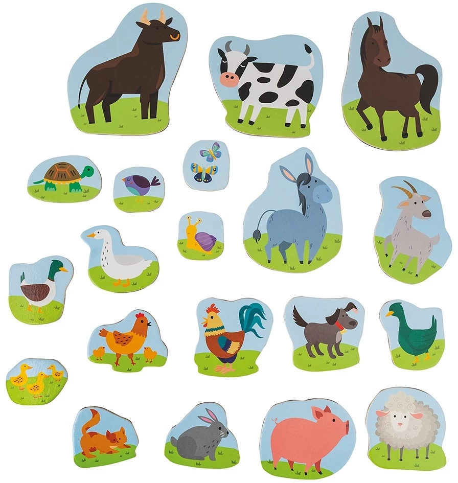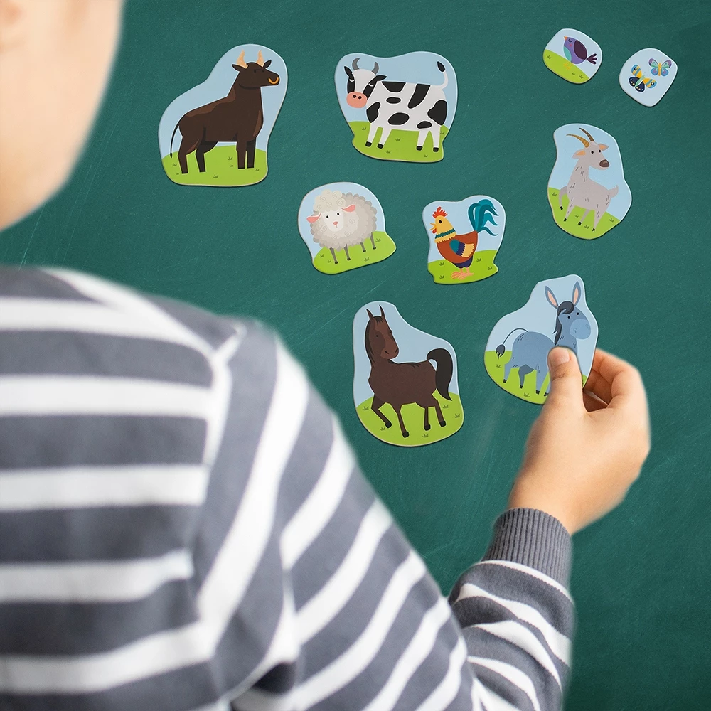 Παιχνίδι με 20 ξύλινους μαγνήτες που δίνει στο παιδί την ευκαιρία να δημιουργήσει το δικό του αγρόκτημα. Είναι ιδανικό για την ανάπτυξη της δημιουργικότητας και της εξοικείωσης του παιδιού με τα ζώα. Εύκολη τοποθέτηση και επανατοποθέτηση σε οποιαδήποτε μαγνητική επιφάνεια. Μαθαίνουμε τα ζώα της φάρμας με το Magnet Box.