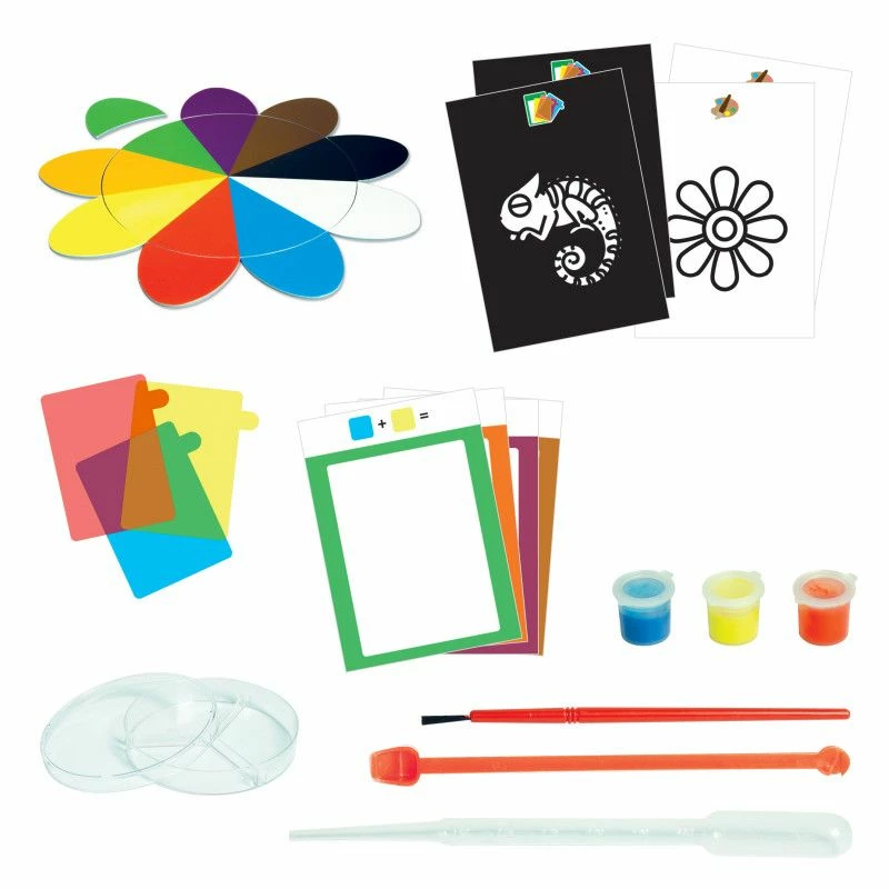 Τα παιδιά μαθαίνουν τα ονόματα των χρωμάτων, τη διάκριση μεταξύ πρωτεύοντος και δευτερεύοντος χρώματος και διασκεδάζουν με τη μίξη των χρωμάτων για να δημιουργήσουν τις αποχρώσεις.