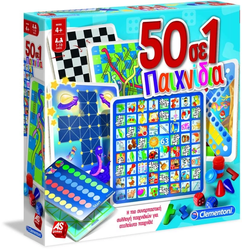 Επιτραπέζιο 50 Σε 1. Μια συλλογή 50 παιχνιδιών για ατελείωτο παιχνίδι με τους φίλους και την οικογένεια. Ανακάλυψε και παίξε κλασσικά και νέα παιχνίδια για όλες τις ηλικίες. Κάθε παιχνίδι έχει διαφορετικό επίπεδο δυσκολίας ώστε να επιλέξεις ανάλογα με την ηλικία και τις προτιμήσεις σου.