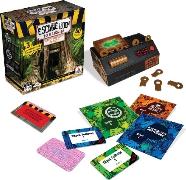 Νιώστε την συγκίνηση και το μυστήριο ενός Escape Room στο σαλόνι του σπιτιού σας. Το παιχνίδι είναι ομαδικό και απρόβλεπτο. Θα πρέπει να συνεργαστείτε όλοι μαζί για να λύσετε τους γρίφους και να ανακαλύψετε όλα τα κρυφά στοιχεία. Μην ξεχνάτε, κερδίζετε μαζί ή χάνετε μαζί. Κάθε παίκτης θα πρέπει να δώσει τον καλύτερό του εαυτό σε αυτό το παιχνίδι για να τα καταφέρετε! Εάν δεν έχετε παίξει ποτέ ένα δωμάτιο μυστηρίου, ετοιμαστείτε για μια εντελώς νέα εμπειρία! Εάν έχετε ξαναπαίξει, ετοιμαστείτε για μια νέα μεγάλη περιπέτεια αυτή την φορά στο σαλόνι του σπιτιού σας! Έχετε μόνο 60 λεπτά για να λύσετε την κάθε περιπέτεια. Ο Χρονο-Αποκωδικοποιητής θα μετράει αντίστροφα το χρόνο, θα δημιουργεί ατμόσφαιρα με ειδικούς ήχους και θα σας βοηθά κατά την διάρκεια του παιχνιδιού. Ζήστε την περιπέτεια με το Escape Room,Το Παιχνίδι, Οικογενειακή Έκδοση! Για 3-5 παίκτες.