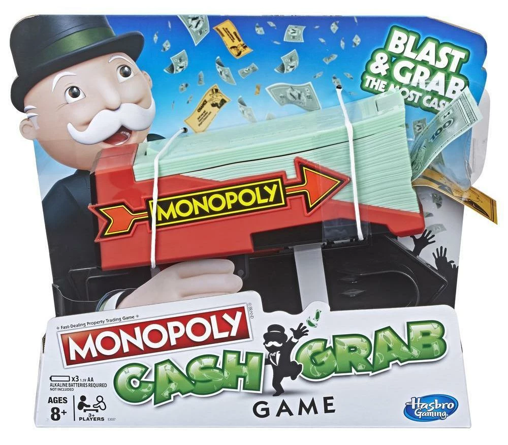 Ετοιμαστείτε για πολύ διασκέδαση με αυτό το επιτραπέζιο Monopoly «χωρίς ταμπλό»! Γεμίστε με χαρτονομίσματα Monopoly τον Εκτοξευτή Χρημάτων (και Τράπεζα), και εκτοξεύστε τα λεφτά και τις κάρτες Εντολών στον αέρα. Όλοι θα βιάζονται να αρπάξουν όσα περισσότερα χρήματα μπορούν. Μαζέψτε τις κάρτες Εντολών που προσθέτουν στρατηγική στο παιχνίδι και βοηθούν τους παίκτες να μαζέψουν περισσότερα χρήματα. Μόλις αδειάσει ο εκτοξευτής, ο παίκτης με τα περισσότερα μετρητά κερδίζει!