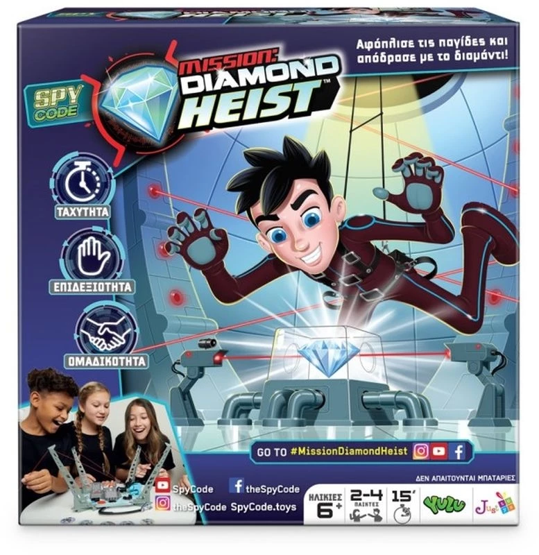 Το Spy Code Mission Diamond Heist είναι ένα παιχνίδι συνεργασίας, δεξιοτήτων και απαιτεί επικοινωνία και ομαδική εργασία για να κερδίσεις. Η ιδέα του παιχνιδιού έχει προκύψει από μια εξαιρετική στιγμή ταινίας, τον θόλο της CIA στην ταινία Mission Impossible. Δύο έως τέσσερις παίκτες καθοδηγούν τον ήρωα, μέσω του πίνακα παιχνιδιού, καθώς ολοκληρώνει τους στόχους. Το τελευταίο εμπόδιο ενεργοποιεί έναν συναγερμό που ειδοποιεί την αστυνομία. Σ’ αυτό το στάδιο ο χρόνος λειτουργεί εναντίον τους.