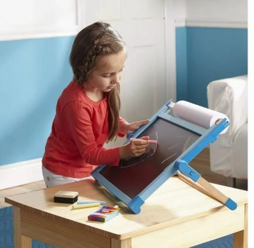 Εμπνεύστε ατελείωτη δημιουργικότητα με αυτό το επιτραπέζιο καβαλέτο διπλής όψεως, που διαθέτει μαγνητική σανίδα στεγνού σβήσιμου στη μία πλευρά και πίνακα κιμωλίας στην άλλη.