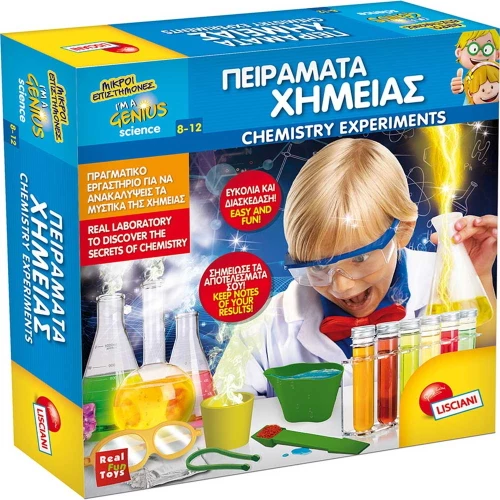 Ανακαλύψτε τον κόσμο της χημείας με εύκολα, ασφαλή και διασκεδαστικά πειράματα! Όλα όσα χρειάζεστε: αντιδραστήρια, δοκιμαστικοί σωλήνες και πολλά όργανα.